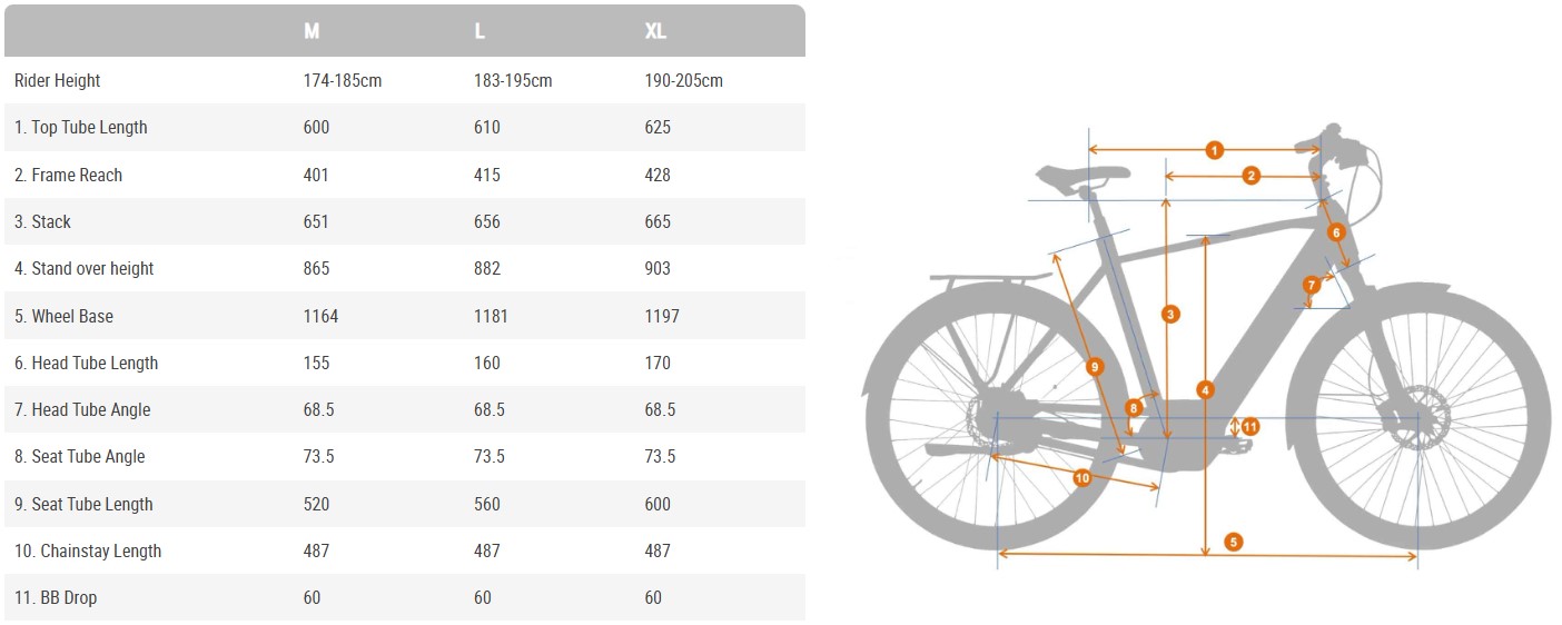 | Τιμόνι | Alloy City-Trekking riser bar, 6066 alloy, 40mm riser, sweep: 20 degree up, 31.8mm clamp, width in man version: S/M: 700mm, L/XL: 720mm |