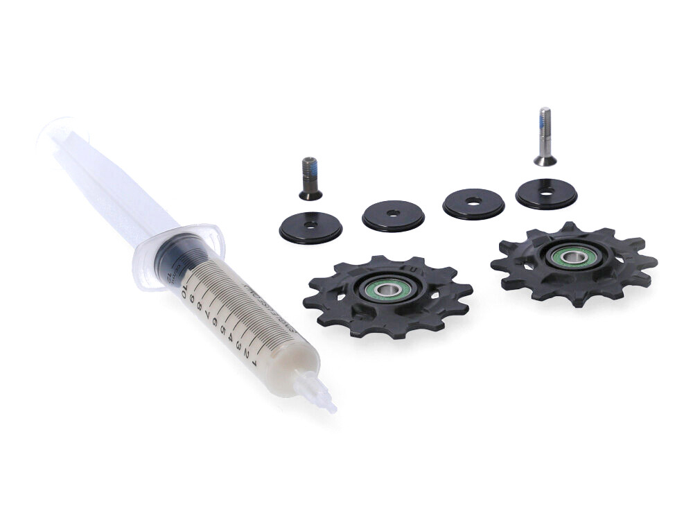 Ανταλλακτικά ροδάκια με κεραμικά ρουλεμάν για το πίσω σασμάν SRAM Red eTap AXS ή Force eTap AXS. Τα κεραμικά ρουλεμάν μειώνουν την τριβή και αυξάνουν την αντοχή. Στην παράδοση περιλαμβάνονται τα 2 ροδάκια, μια σύριγγα με ειδικό γράσο 10 ml για συντήρηση καθώς και νέες βίδες για τη στερέωση τους.
