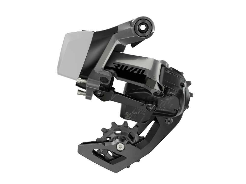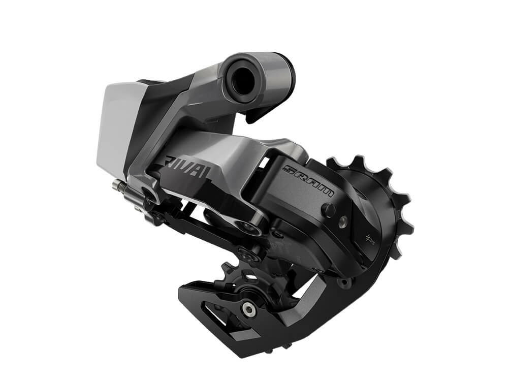 Ο οπίσθιος εκτροχιαστής eTap AXS με βελτιωμένο μοτέρ και μετάδοση δεδομένων, εξασφαλίζει ακόμη πιο γρήγορες αλλαγές. Η απόσβεση κραδασμών Orbit-Fluid εξαρτάται από την ταχύτητα και εξασφαλίζει ασφαλή καθοδήγηση της αλυσίδας, ακόμη και σε χρήση εκτός δρόμου. Τα μεγαλύτερα ροδάκια κάνουν την κίνηση ακόμα πιο αποτελεσματική σε σύγκριση με την προηγούμενη έκδοση. Ένας πομπός ANT + ενσωματωμένος στο πίσω ντεραγιέ επιτρέπει την επικοινωνία μεταξύ του υπολογιστή του ποδηλάτου σας και του πίσω εκτροχιαστή. Μπορείτε να έχετε πληροφορίες σχετικά με την κατάσταση φόρτισης της μπαταρίας και την τρέχουσα ταχύτητα. Ο πίσω εκτροχιαστής short cage είναι συμβατός με κασέτες 10-28 έως 10-36 δόντια. Είναι συμβατό με ολες τις υπάρχουσες μπαταρίες eTap, σε 1Χ και 2Χ χρήσεις και μόνο με χειριστήρια αλλαγής ταχυτήτων SRAM eTap AXS