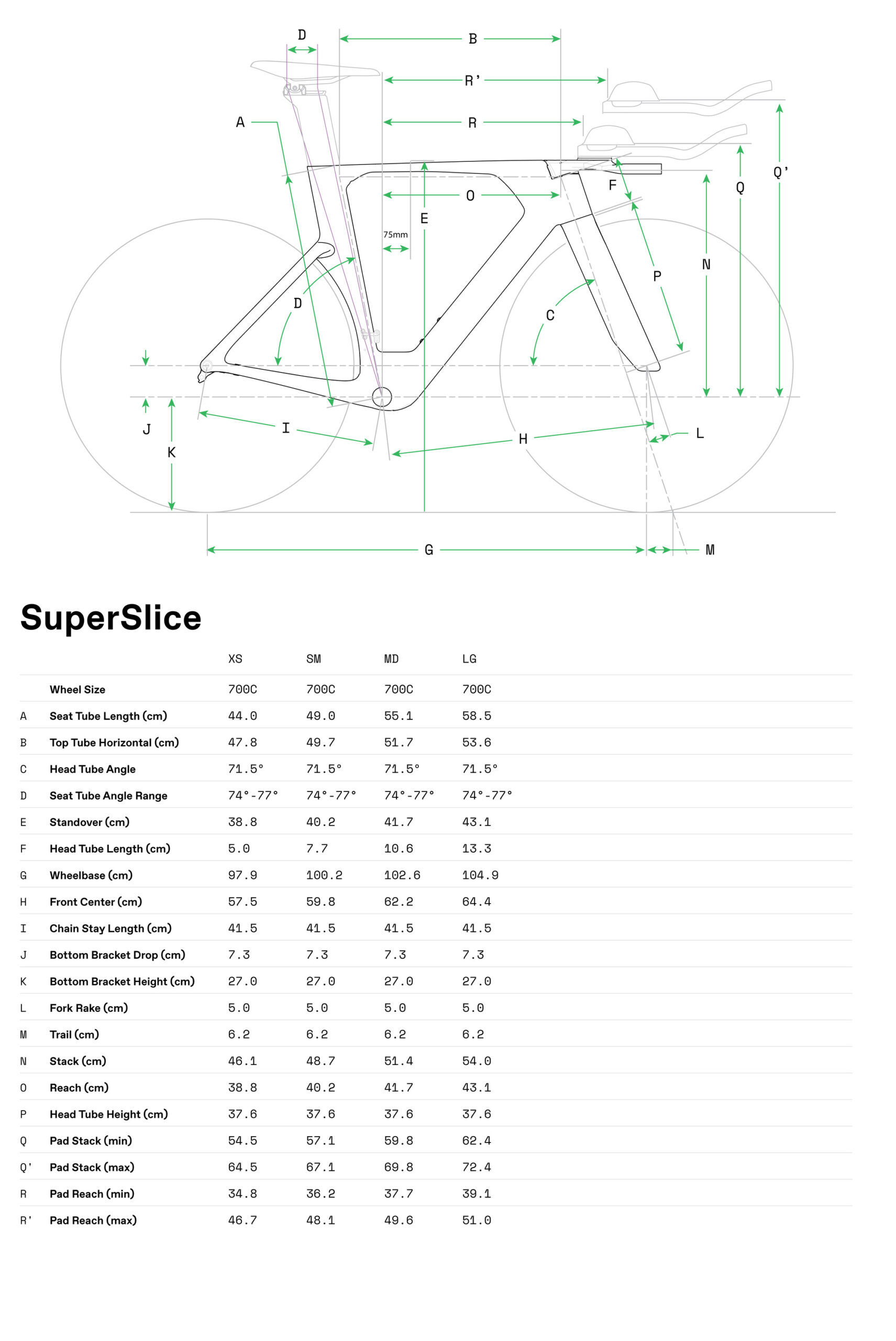 Το Cannondale SuperSlice LAB71 είναι ένα κορυφαίο frameset για χρονομέτρου και τρίαθλο, σχεδιασμένο με μοναδικό στόχο: την απόλυτη ταχύτητα όταν ο χρόνος μετράει κυριολεκτικά. Η τρίτη γενιά SuperSlice αξιοποιεί προηγμένη αεροδυναμική, υπερ-ελαφριά ανθρακονήματα Ultralight Series 0, και σχεδίαση που συμμορφώνεται με τους κανονισμούς UCI ενώ παραμένει ακραία αποδοτική για αγωνιστική χρήση.